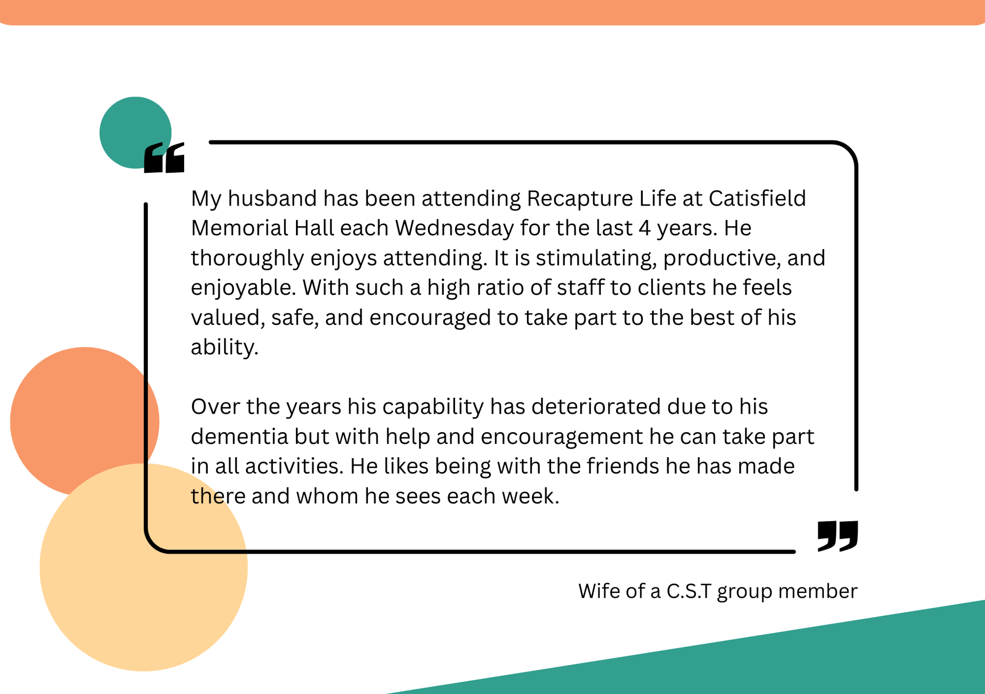 - We also offer 1 hour C.S.T sessions at care-home settings.